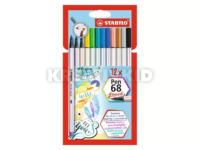 Ecsetirón készlet, STABILO "Pen 68 brush", 12 különböző szín