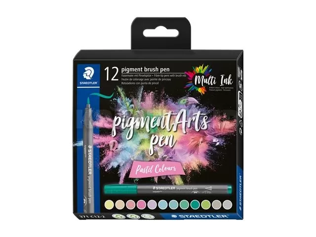 Ecsetirón készlet, STAEDTLER "Pigment brush 371", 12 különböző pasztell szín