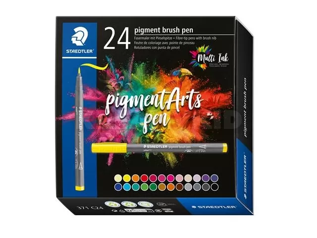 Ecsetirón készlet, STAEDTLER "Pigment brush 371", 24 különböző szín