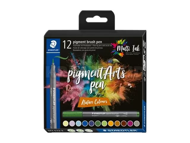 Ecsetirón készlet, STAEDTLER "Pigment brush 371", 12 különböző természeti szín