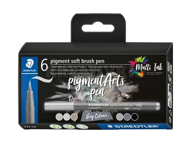 Ecsetirón készlet, STAEDTLER "Pigment 372", 6 különböző fekete és szürke árnyalat