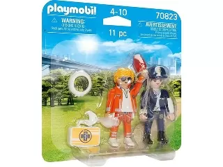 A spray palackokkal a kezében a figura éppen végzett a graffitivel, amikor a zseblámpa elvakítja. A Playmobil DuoPack rendőr és graffitis játékkészlet...