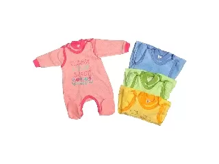 Baba 2 részes frottier együttes filmnyomással.A szett tartalma:- kocsikabát- ujjatlan rugdalozóMérete: 62Anyaga: 80% pamut 20% poliészter...