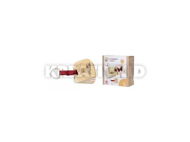 Montessori fa oktató játék 7 darabos: 12 oldal állatok képével, akasztóval, 10x10 cm, FSC® 100%.