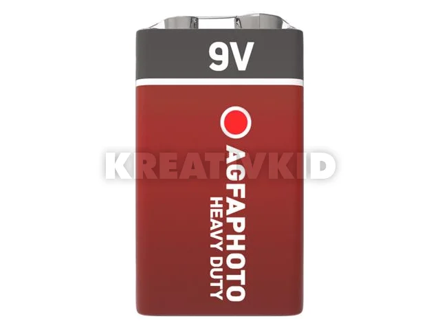 Elem, 9V, 1 db, féltartós (szén-cink), zsugor, AGFAPHOTO "Heavy Duty"
