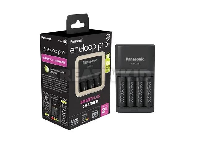 Elemtöltő, AA/AAA, 4x2500 mAh AA, gyorstöltő, PANASONIC "Eneloop Pro"