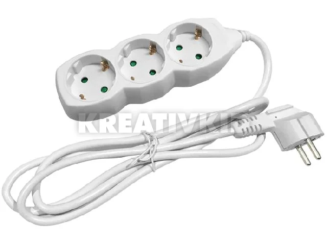 Elosztósor, 3 aljzat, 3 m, ENTAC, fehér