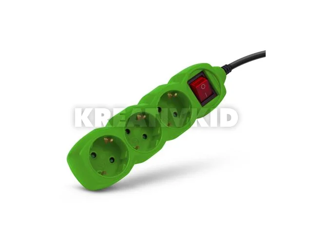 Elosztósor, 3 aljzat, 1,5 m, kapcsolóval, ENTAC, zöld