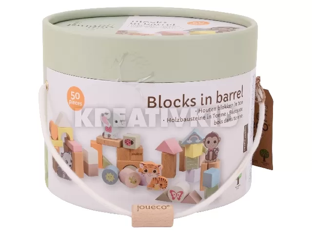 A Johntoy Jouéco játékok kiváló minőségű fából készülnek, amely nem tartalmaz káros anyagokat. A játék fontos szerepet játszik a gyermek fejlődésében. Serkenti a gyermekek érvelési és kognitív készségeit, elősegíti a kreatív és motoros készségek fejlődését. Tökéletes a szem és a kéz koordinációjára. Ez az építőkocka készlet különböző méretű, formájú, színű és állatképes téglákból áll. Összesen 50 tégla van. Rajtuk keresztül a kicsi képes lesz különféle konstrukciókat építeni.