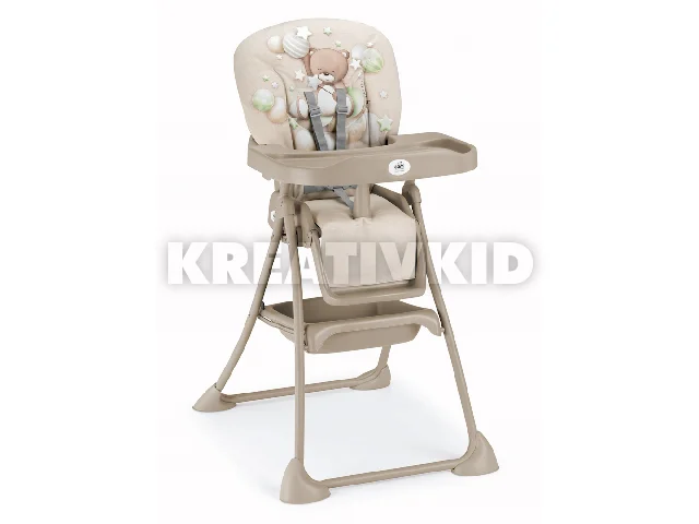 3 pozícióban dönthetõ háttámla; 2 pozícióban állítható lábtartó; széles, állítható tálca; puha huzat; 5 pontos biztonsági öv; tárolókosár. A mûanyag részeket egyszerûen tisztíthatod egy nedves ruha segítségével. Könnyedén kompakt méretûre csukható.