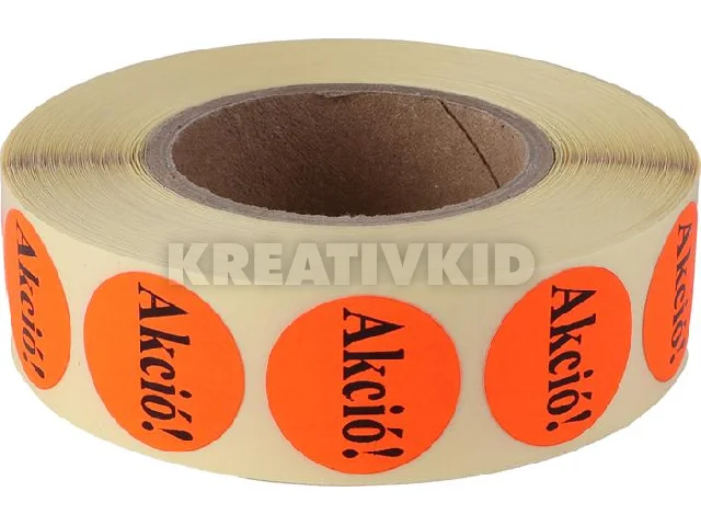 Etikett, 20 mm kör, "AKCIÓ" felirattal, 1000 etikett/tekercs, piros