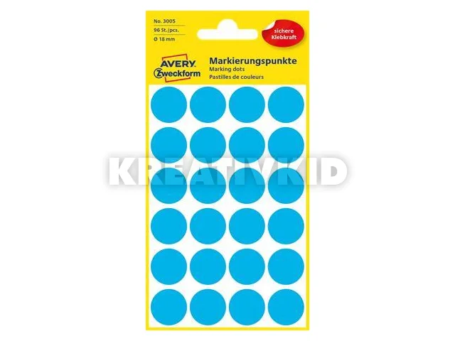 Etikett, 18 mm, kör, AVERY ZWECKFORM, kék, 96 etikett/csomag