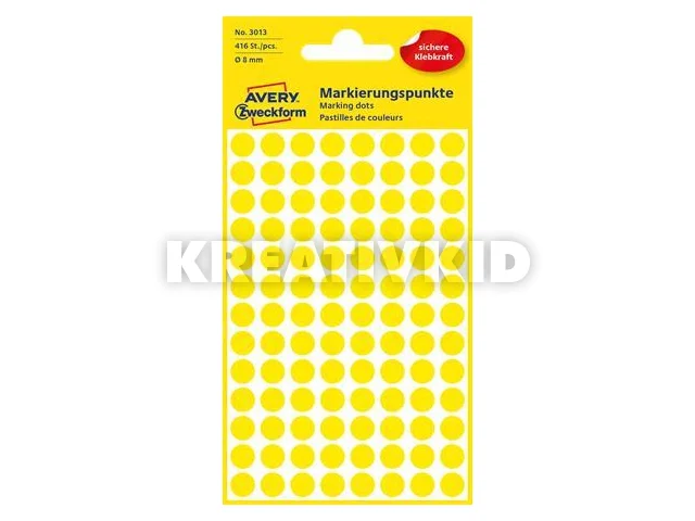 Etikett, 8 mm, kör, AVERY ZWECKFORM, sárga, 416 etikett/csomag