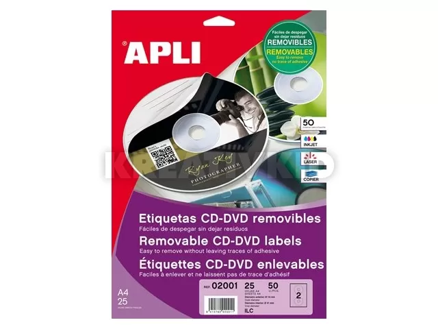 Etikett, CD/DVD, A4, matt, eltávolítható, APLI