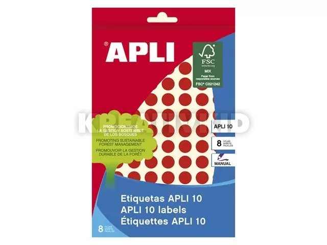 Etikett, 10 mm kör, kézzel írható, színes, APLI, piros, 1008 etikett/csomag