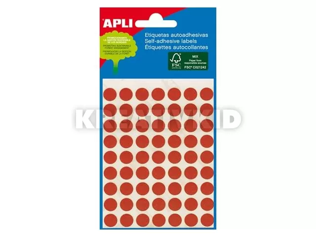 Etikett, 8 mm kör, kézzel írható, színes, APLI, piros, 288 etikett/csomag