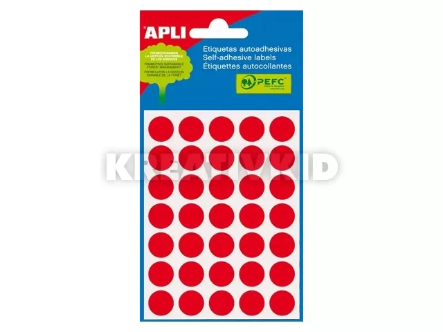 Etikett, 13 mm kör, kézzel írható, színes, APLI, piros, 175 etikett/csomag