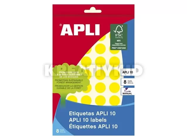 Etikett, 16 mm kör, kézzel írható, színes, APLI, sárga, 432 etikett/csomag