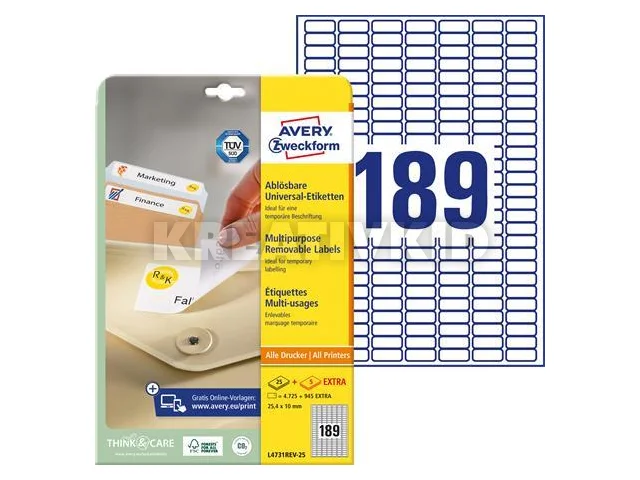 Etikett, univerzális, eltávolítható, 25,4x10 mm, AVERY ZWECKFORM, 5670 etikett/csomag