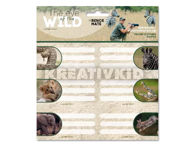 Máté Bence természetfotós képeivel díszített öntapadós papír füzetcímke, egy csomagban különböző mintákkal. 3 ív x 6 db, összesen 18 db található. Felakasztható fejléccel.