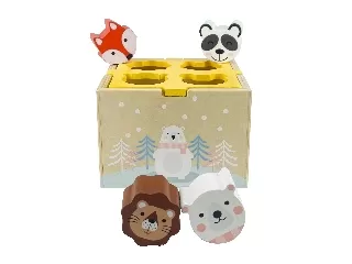 Montessori fa oktató játék 7 darabos: 12 oldal állatok képével, akasztóval, 10x10 cm, FSC® 100%.
