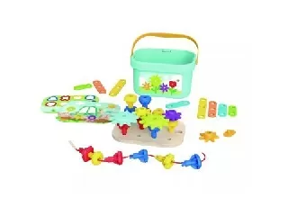 - Fa alapú játék - Fejleszti a logikai és térbeli gondolkodást - 5 különböző színű geometriai forma: piros négyzet, zöld téglalap, natúr félkör, sárga...