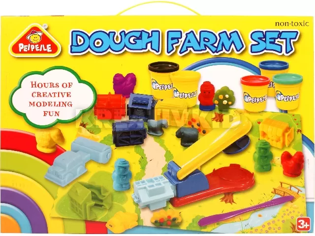 Alkoss meg egy egész gazdaságot színes gyurmából! A Farm 4 tégelyes gyurmakészlet alapszínű gyurmákat és rengeteg nyomóformát tartalmaz, amikkel épületeket, állatokat, farmereket és még egy traktort is meg tudsz formázni. A formákat csak tedd a prés végébe, töltsd fel gyurmával, és amikor lenyomod a kart, a kinyitható forma megtelik gyurmával, és már kész is a bárány, boci, ló, vagy épp a traktor, vagy a farmer figura. A Farm 4 tégelyes gyurmakészletben lévő gyurmák keverhetők, új színeket is meg tudsz velük alkotni, a gyurma egészségre ártalmas anyagot nem tartalmaz. A Farm 4 tégelyes gyurmakészlet csomagolási méretei: 38 x 8 x 26 cm.