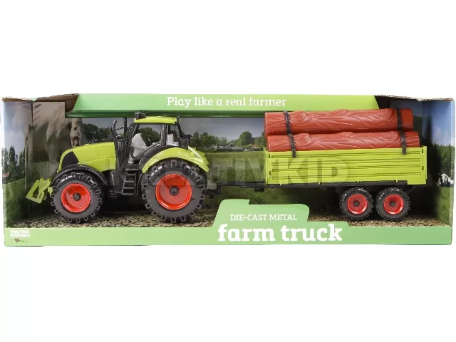 Szállíts a farmon rönköt vagy termést a Farm traktorral! A zöld színű Farm traktor egy masszív, műanyagból készült mezőgazdasági munkagép, utánfutóval felszerelve. A traktorral bármit el tudsz szállítani, legyen szó farönkökről, vagy épp állatokról, a traktor utánfutója leakasztható, a Farm traktor együtt használható más farm játékokkal, járművekkel is. A traktor és utánfutó mérete: 43 cm. A játékok külön kaphatóak. A megjegyzésben kérjük tüntesd fel, hogy melyik változatot szeretnéd!