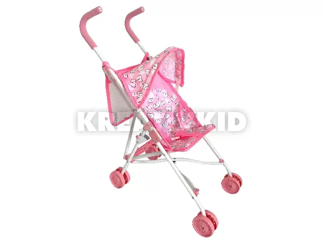 A babakocsi - rózsaszín ülésébe egy biztonsági övvel tudod rögzíteni a játékbabát.