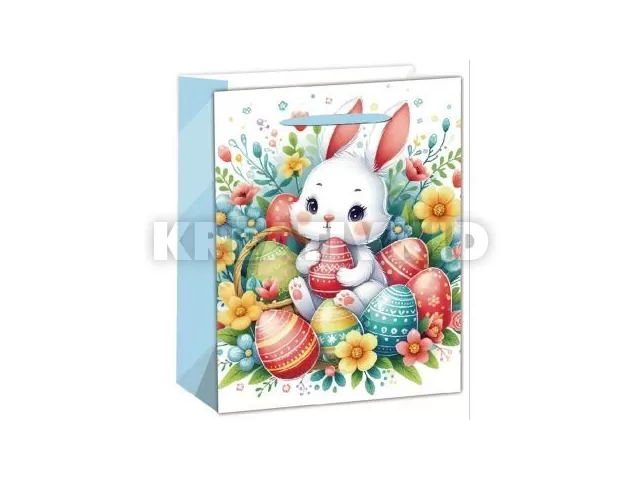 Fehér nyuszi mintás ajándéktasak - 18x23 cm