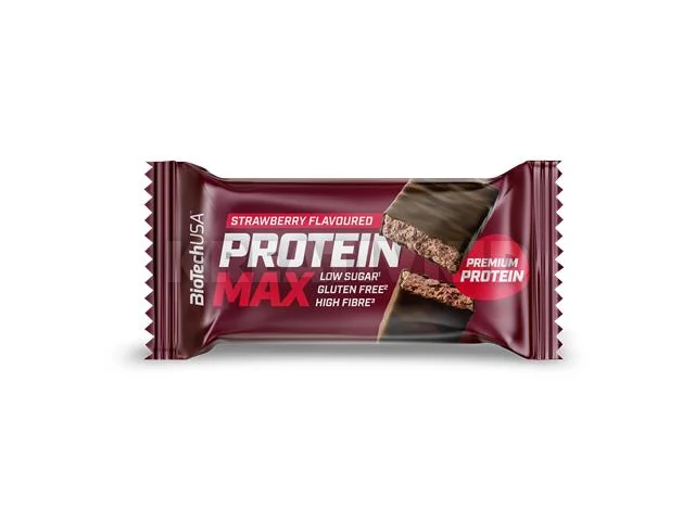 Fehérjeszelet, gluténmentes, 45g, BIOTECH USA "Protein Max", eper