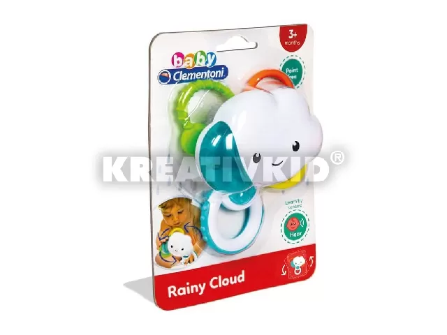 Kedves esőfelhős kinézettel rendelkező Clementoni csörgő. A csemete motorikus mozgása mellett a látását, valamint a hallását is fejleszti. A különféle tapintású karikákkal ellátott csörgővel a csöppség a fogást is tudja gyakorolni. Remek minőségű anyagokból lett elkészítve.