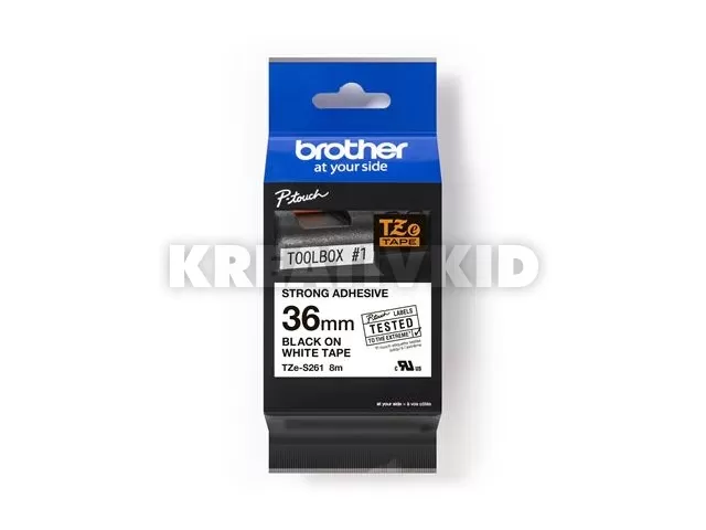 Feliratozógép szalag, 36 mm x 8 m, BROTHER, "TZe-261" fehér-fekete