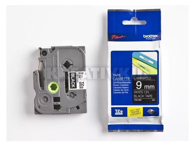 Feliratozógép szalag, 9 mm x 8 m, BROTHER, "TZe-325" fekete-fehér