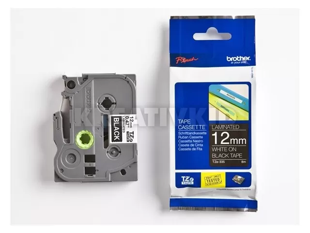 Feliratozógép szalag, 12 mm x 8 m, BROTHER, "TZe-335" fekete-fehér