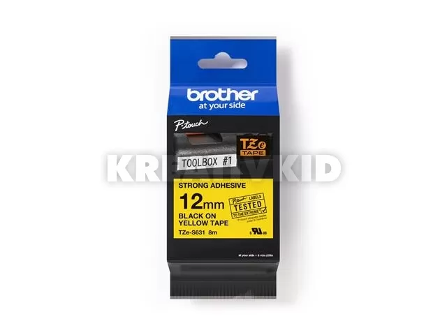 Feliratozógép szalag, 12 mm x 8 m, BROTHER, "TZe-631" sárga-fekete