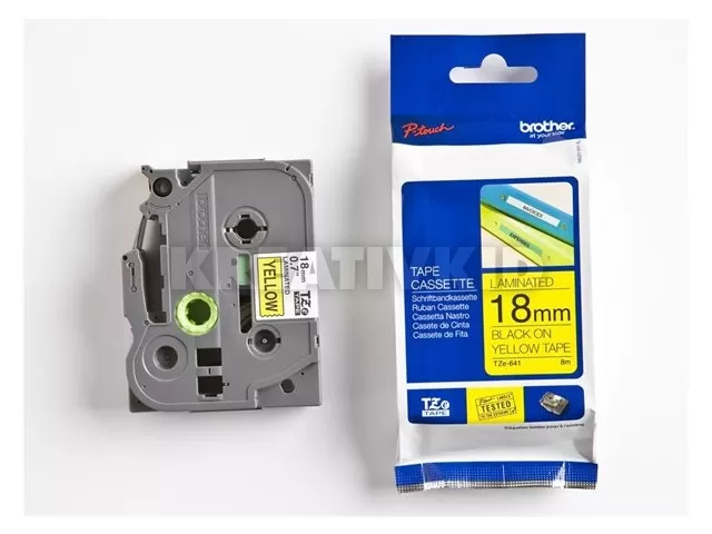 Feliratozógép szalag, 18 mm x 8 m, BROTHER, "TZe-641" sárga-fekete