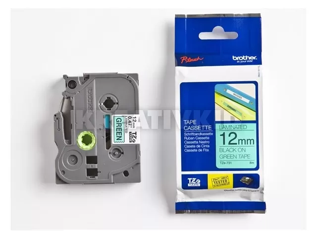 Feliratozógép szalag, 12 mm x 8 m, BROTHER, "TZe-731" zöld-fekete