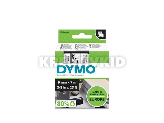 Feliratozógép szalag, 9 mm x 7 m, DYMO "D1", fehér-fekete