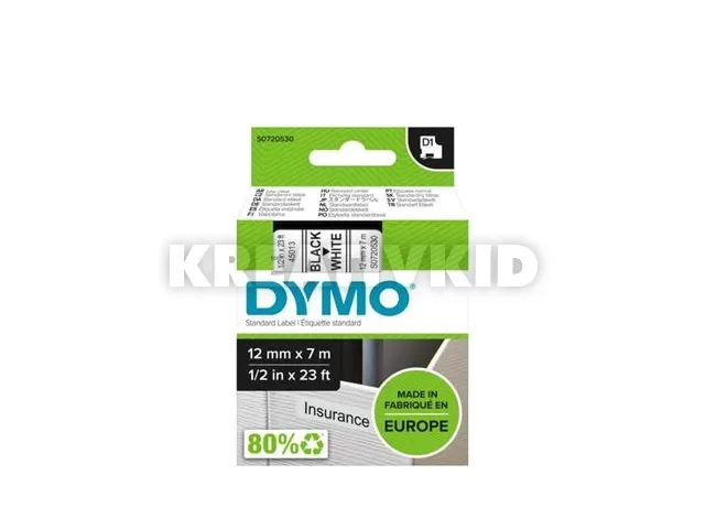 Feliratozógép szalag, 12 mm x 7 m, DYMO "D1", fehér-fekete