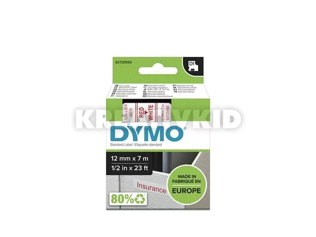 Feliratozógép szalag, 12 mm x 7 m, DYMO "D1", fehér-piros