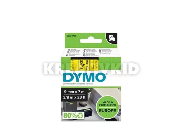 Feliratozógép szalag, 9 mm x 7 m, DYMO "D1", sárga-fekete