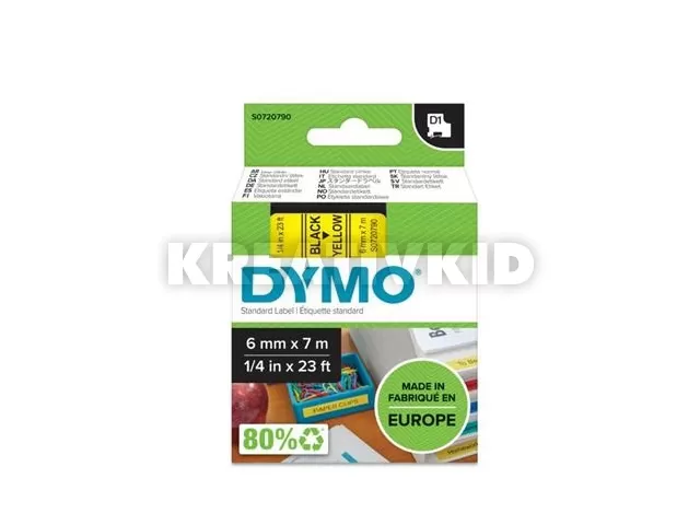 Feliratozógép szalag, 6 mm x 7 m, DYMO "D1", sárga-fekete