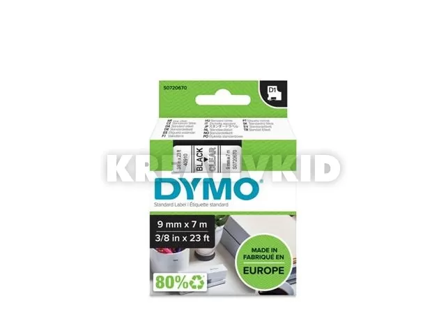 Feliratozógép szalag, 9 mm x 7 m, DYMO "D1", víztiszta-fekete