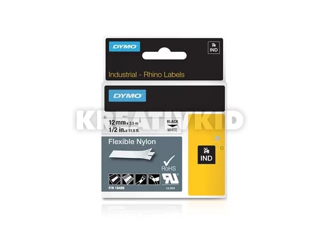 Feliratozógép szalag, flexibilis ID, 12 mm x 3,5 m, DYMO "Rhino", fehér-fekete