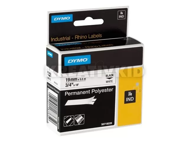 Feliratozógép szalag, tartós poliészter, 19 mm x 5,5 m, DYMO "Rhino", fehér-fekete
