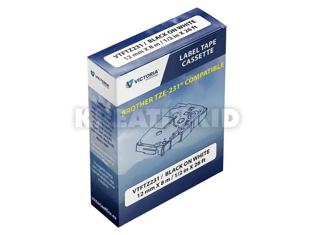 Feliratozógép szalag, 12 mm x 8 m, VICTORIA TECHNOLOGY, fehér-fekete