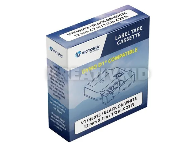 Feliratozógép szalag, 12 mm x 7 m, VICTORIA TECHNOLOGY, fehér-fekete