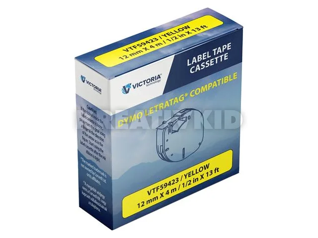 Feliratozógép szalag, 12 mm x 4 m, VICTORIA TECHNOLOGY, sárga