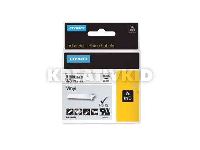Feliratozógép szalag, vinil, 9 mm x 5,5 m, DYMO "Rhino", fehér-fekete
